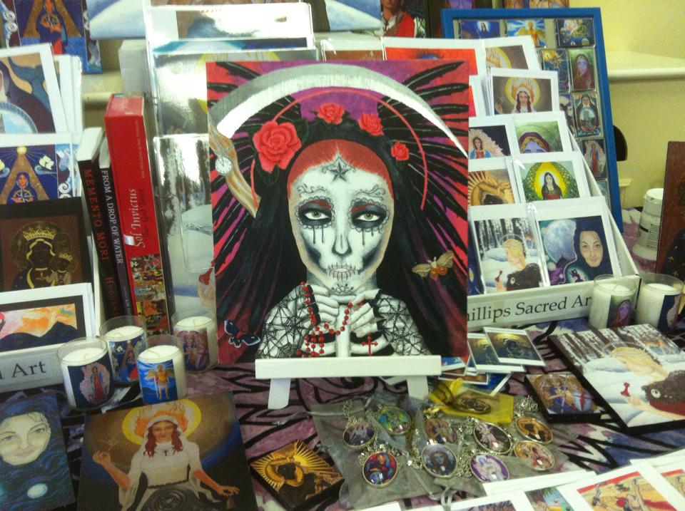 I spent the week in great company selling my artwork in Glastonbury Town Hall and working on the piece in the photos, ‘Santa Muerte’. Looking forward to being back for it next year!