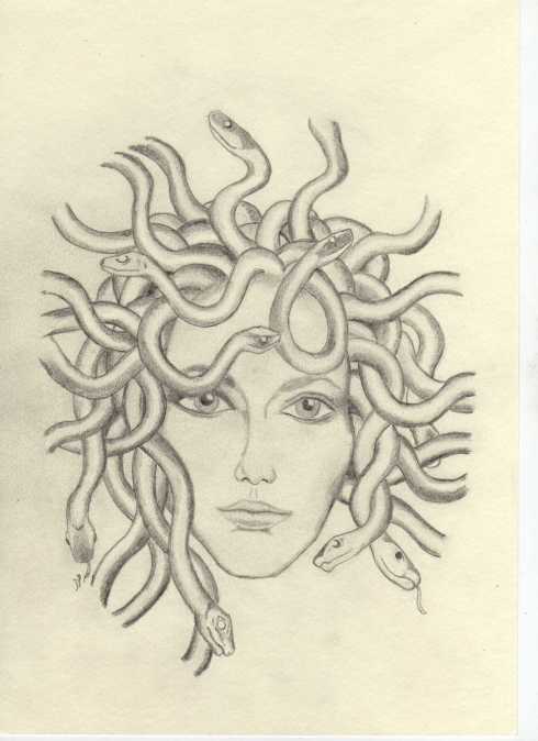 From Greek mythology, Medusa. Commission for a tattoo design. Pencil (8in x 12 in)